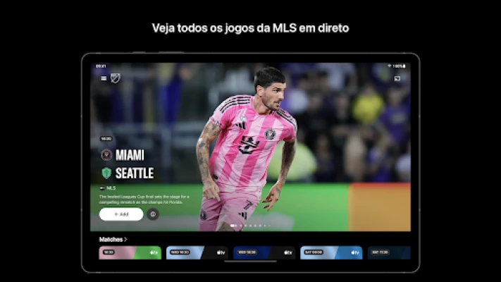Para os apaixonados por desporto, o MLS Season Pass na Apple TV oferece uma imersão total no mundo do futebol. Acompanhe a temporada completa da Major League Soccer, assistindo a todos os jogos em direto – incluindo os emocionantes playoffs e a Leagues Cup – sem restrições de transmissão. Reviva cada lance com repetições integrais, explore destaques inesquecíveis e mantenha-se a par de tudo com a cobertura exclusiva pré e pós-jogo. É o destino definitivo para os fãs de futebol. Por favor, note que a disponibilidade das funcionalidades, canais e conteúdos presentes na Apple TV poderá variar dependendo do seu país ou região.