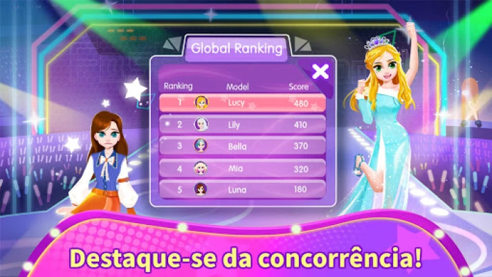Com a confiança e o brilho renovados, é hora de explorar a criatividade fashion. Explore um vasto guarda-roupa de mais de 50 peças de vestuário e acessórios, misturando e combinando estilos para criar visuais únicos em sessões de fotos de tirar o fôlego. Escolha fundos deslumbrantes, aplique filtros e adesivos divertidos para capturar a essência da moda. Em seguida, prepare-se para o grande momento: o concurso de modelos. Com 70 ferramentas de beleza e maquiagem à disposição, experimente penteados modernos, maquiagens sofisticadas com sombras e batons, e escolha o vestido perfeito para uma estreia espetacular na passarela.