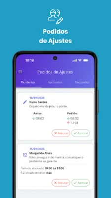 Descubra a solução ideal para a gestão de ponto da sua empresa. Este aplicativo oferece a maneira mais prática e simples de registar e acompanhar as horas de trabalho dos seus colaboradores, otimizando processos e garantindo conformidade. Simplifique a administração do tempo da sua equipe com eficiência e precisão.