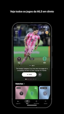 Para os apaixonados por desporto, o MLS Season Pass na Apple TV oferece uma imersão total no mundo do futebol. Acompanhe a temporada completa da Major League Soccer, assistindo a todos os jogos em direto – incluindo os emocionantes playoffs e a Leagues Cup – sem restrições de transmissão. Reviva cada lance com repetições integrais, explore destaques inesquecíveis e mantenha-se a par de tudo com a cobertura exclusiva pré e pós-jogo. É o destino definitivo para os fãs de futebol. Por favor, note que a disponibilidade das funcionalidades, canais e conteúdos presentes na Apple TV poderá variar dependendo do seu país ou região.
